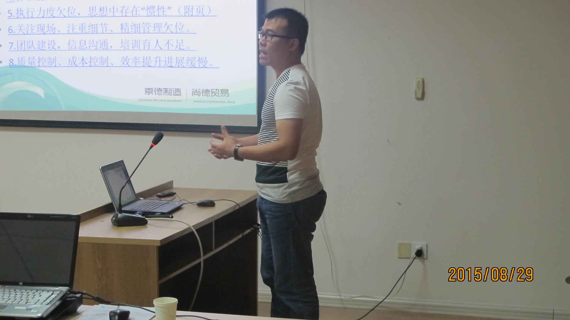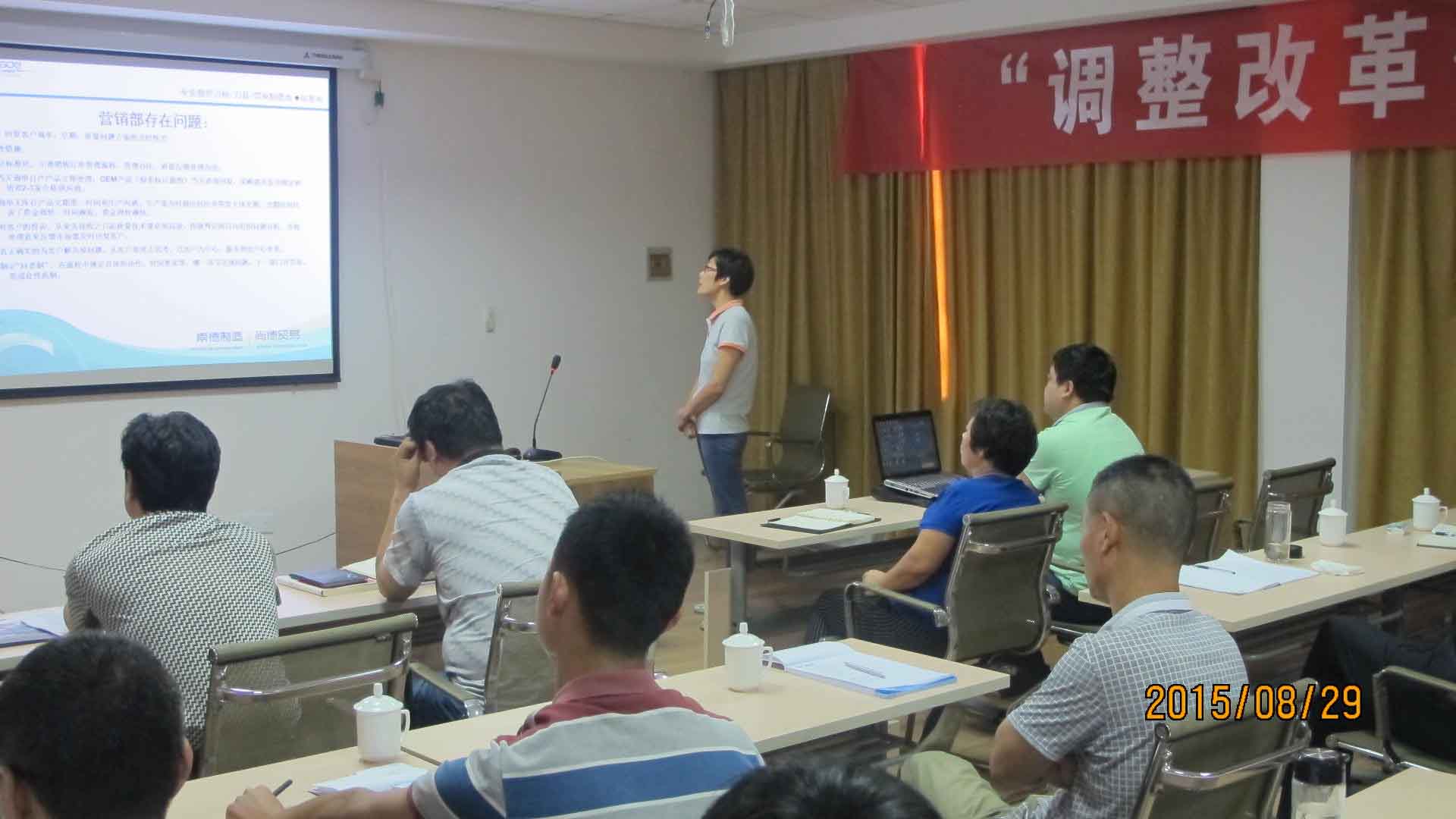 今年上半年,在整個機(jī)械加工行業(yè)普遍下滑的嚴(yán)峻形勢下,我公司逆勢上升,銷售收入仍比去年同期實現(xiàn)了大幅增長,出口外貿(mào)增長了50%,國內(nèi)銷售增長了26%。為了讓全體干部員統(tǒng)一思想,堅定信心,加強(qiáng)管理,完善提高,練內(nèi)功,上水平,繼續(xù)保持良好的發(fā)展勢頭,8月29--30日即周六、周日,公司主管以上管理人員、銷售人員集中到孔子誕生地尼山,針對公司目前狀況,就下一步工作重點、調(diào)整改革思路,以及公司今后發(fā)展等問題,進(jìn)行為期兩天的封閉式研討活動。此次活動,通過召開會議、分組討論、自查自糾、自我批評演講匯報、集體戶外活動等方式,開展的有聲有色,有序有效,達(dá)到了預(yù)期的目的。