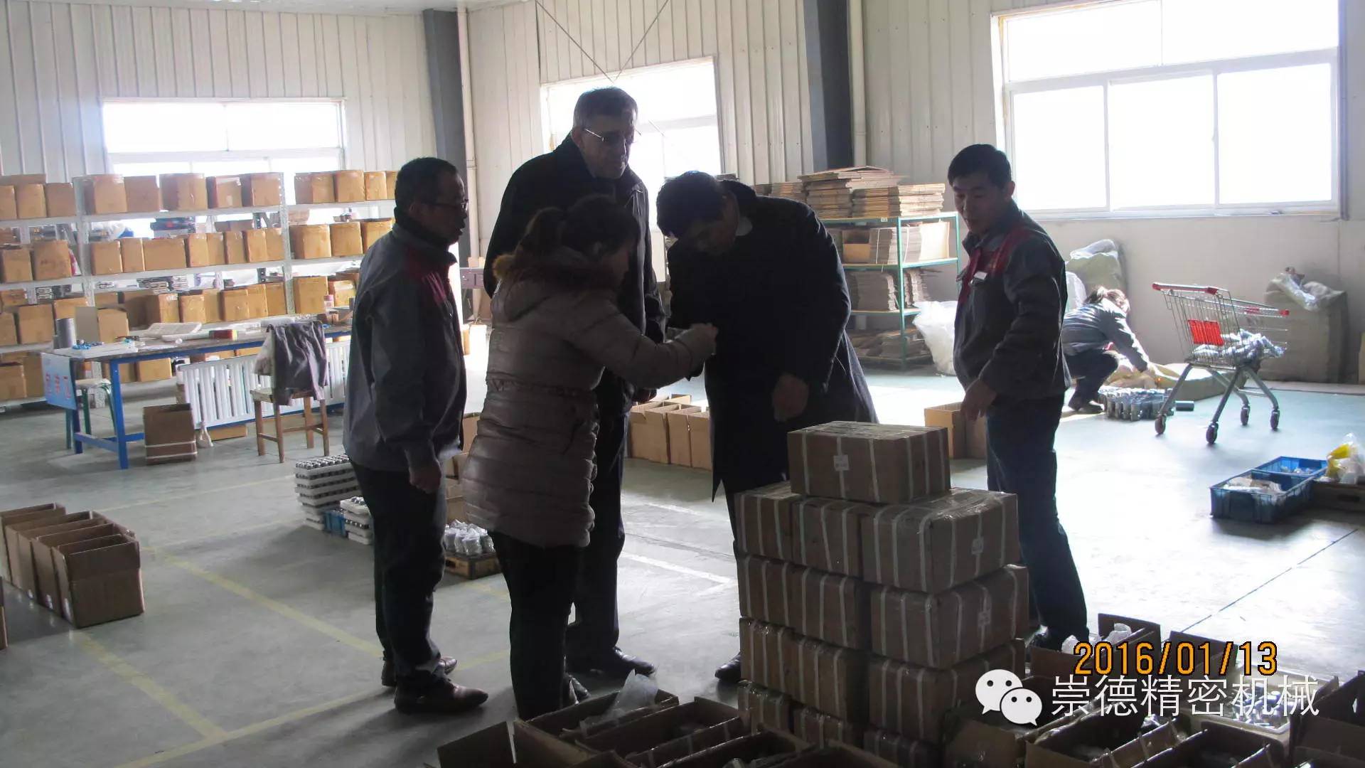1.13日上午十點(diǎn),俄羅斯客戶應(yīng)約抵達(dá)崇德。總經(jīng)理帶領(lǐng)崇德高管熱情迎接,還沒(méi)等緩解一路的車(chē)馬勞頓,我們這位外國(guó)友人就迫不及待的想要參觀一下崇德公司。他說(shuō)他想認(rèn)真看看崇德產(chǎn)品,在意大利展會(huì)上他對(duì)我們的產(chǎn)品非常滿意。